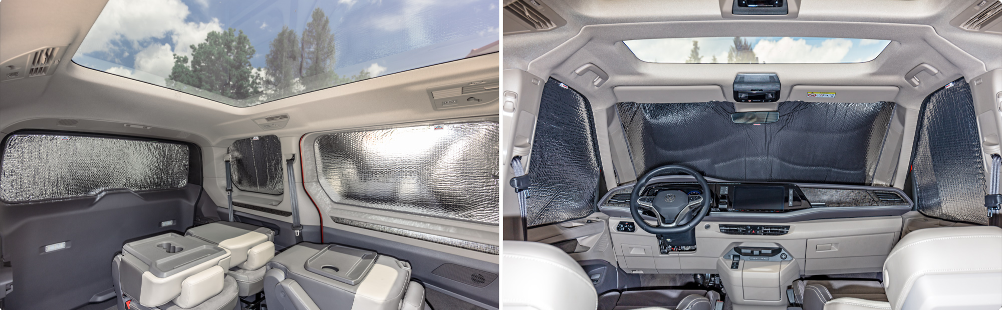 ISOLITE ® Inside is available for almost all passenger compartment windows of the VW T7 Multivan, without sliding windows in the sliding doors.