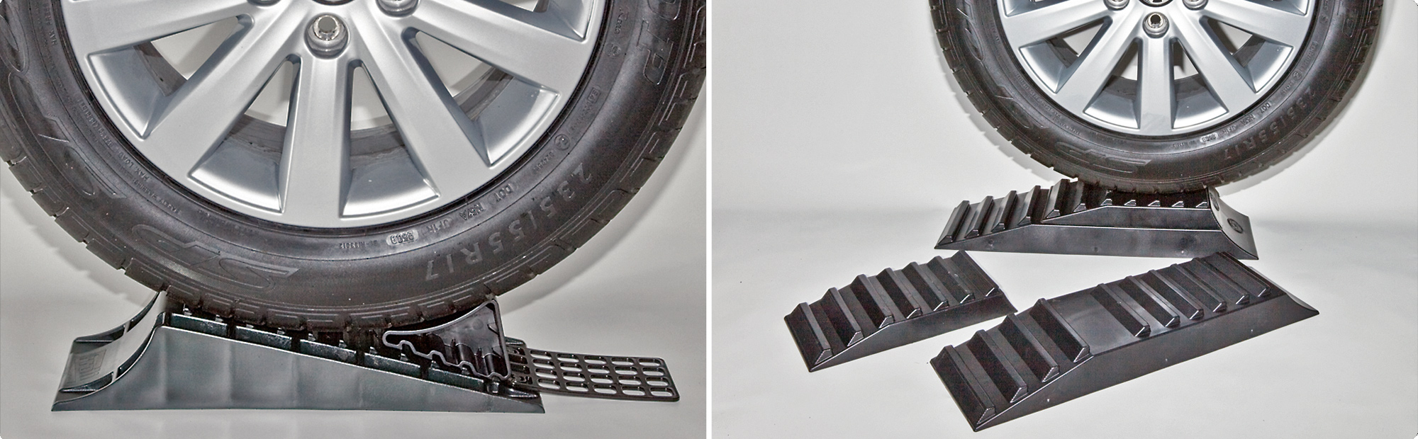 Lorsque le véhicule est complètement monté sur les cales, ses roues reposent à l’horizontale, sans aucune déclivité !