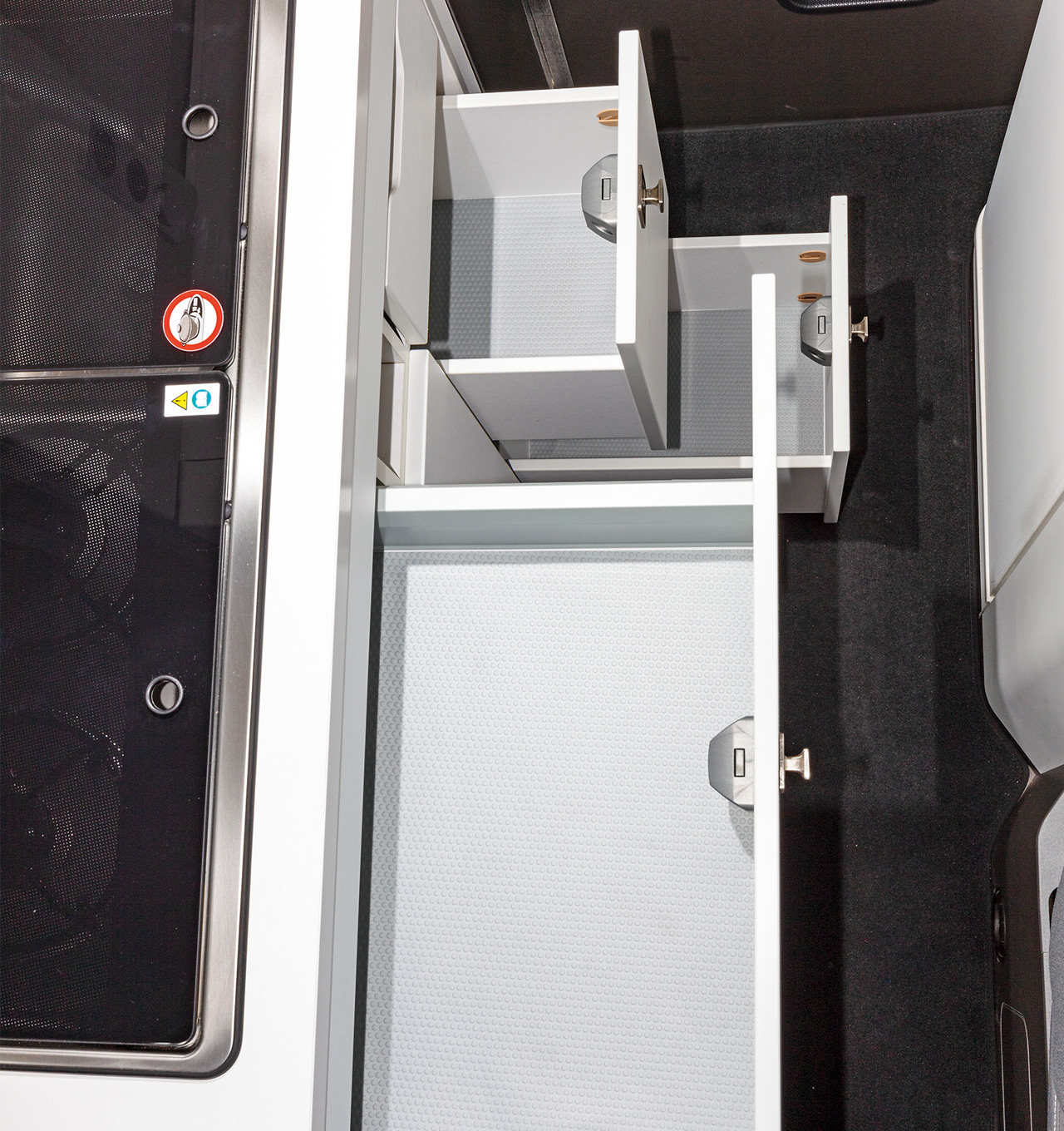 Les tapis antidérapants/de protection sont spécialement conçus pour les compartiments de la cuisine du VW Grand California et sont fabriqués à partir de matériaux allemands de haute qualité.