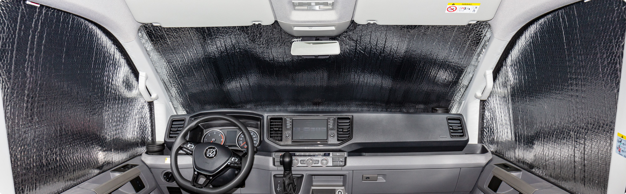 ISOLITE Inside fenêtre de la cabine, en 3 pièces, Volkswagen Grand California 600 / 680 avec rétroviseur d’habitacle à pied arrondi, VW Crafter (2017–>).