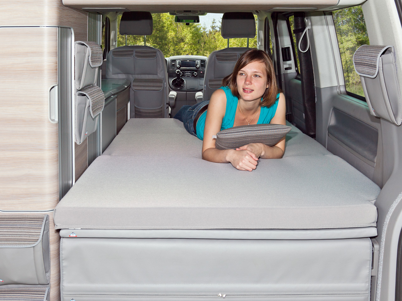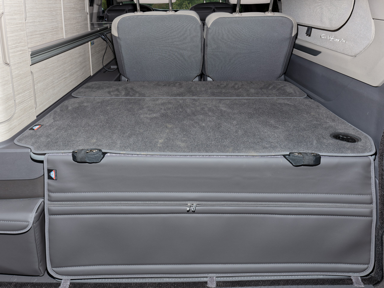 Plus d'espace de rangement et un confort de couchage encore plus grand. L'iXTEND PAD permet d'utiliser la rallonge de lit arrière du VW T6/T5 California Ocean, Coast/Comfortline pour dormir en position haute. Le lit rabattable iXTEND Allround offre également un excellent confort de couchage et permet de créer un niveau de chargement réglable en hauteur, sans aucune modification !