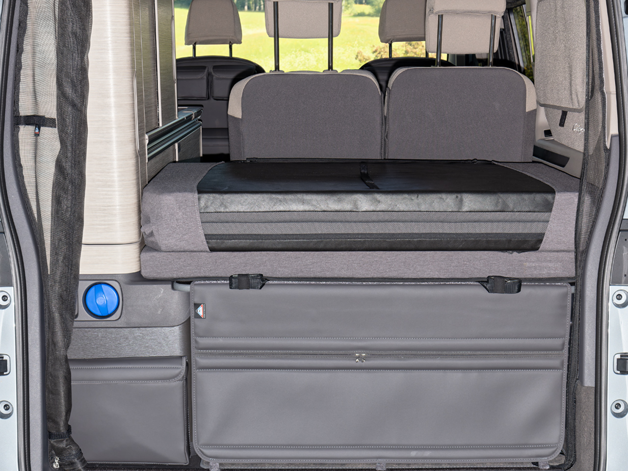iXTEND PAD ® pour le VW T7 California Ocean / Coast permet d'optimiser l'espace de chargement arrière supérieur lorsque la benne rabattable VW est retirée et non utilisée au quotidien.