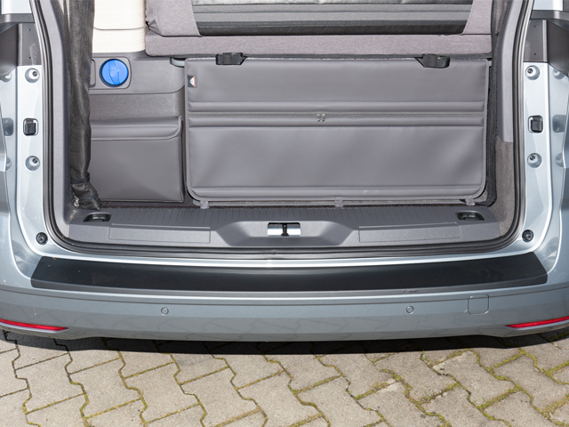 Photo en bas à droite : film de protection transparent pour le creux de poignée du hayon des Caddy 5 / 4 / 3 VW.