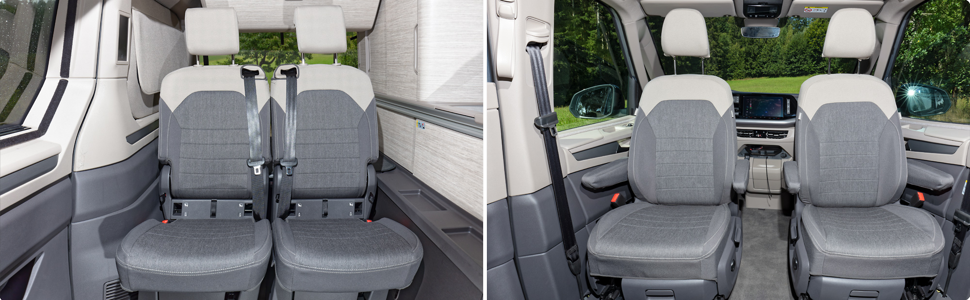 Housses Second Skin® pour sièges cabine du VW T7 California Beach Tour, Beach Camper également compatibles avec les sièges cabine du California Ocean, Coast.
