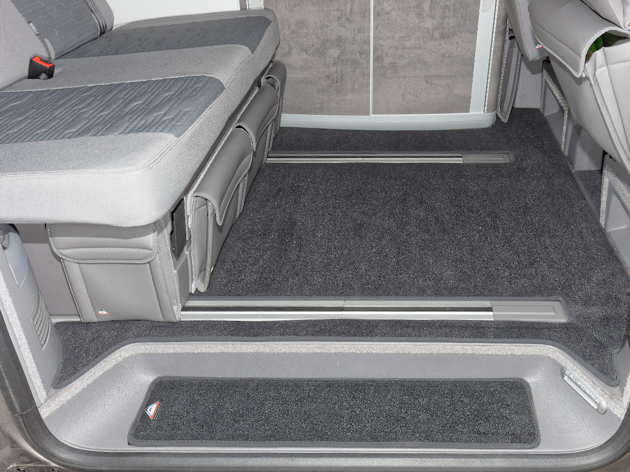 Tapis en velours T6.1 VW California Beach espace voyageurs avec banquette 2 places, design « Palladium »