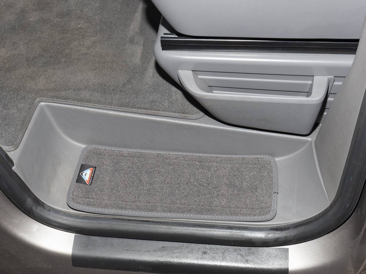 Un ensemble de tapis en velours en deux parties est disponible pour les marchepieds de la cabine. Chaque tapis est fixé aux marchepieds grâce à une bande auto-agrippante spéciale et peut être retiré à tout moment pour le nettoyage.