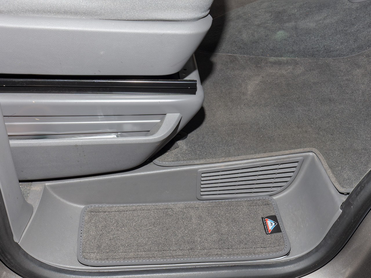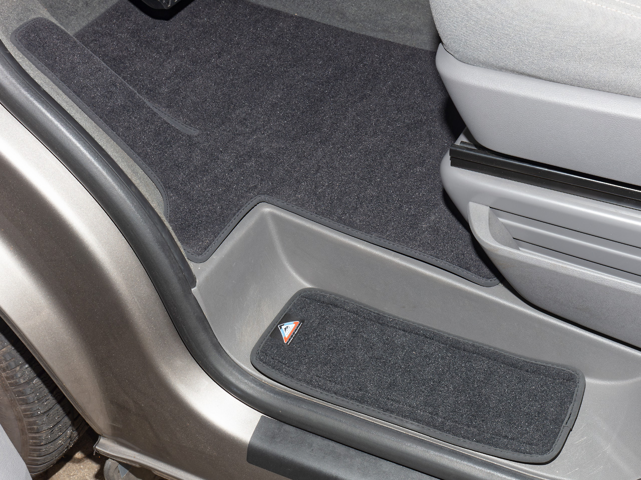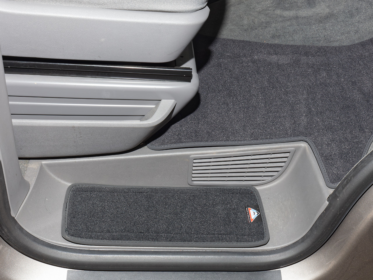 Les tapis pour l’espace voyageurs et l’espace de chargement du coffre se raccordent net. Ce qui non seulement rend le véhicule plus confortable, mais aussi l’entretien du sol beaucoup plus facile. Les passages des rails de guidage des banquettes coulissantes du véhicule sont évidés dans tous les tapis velours.
