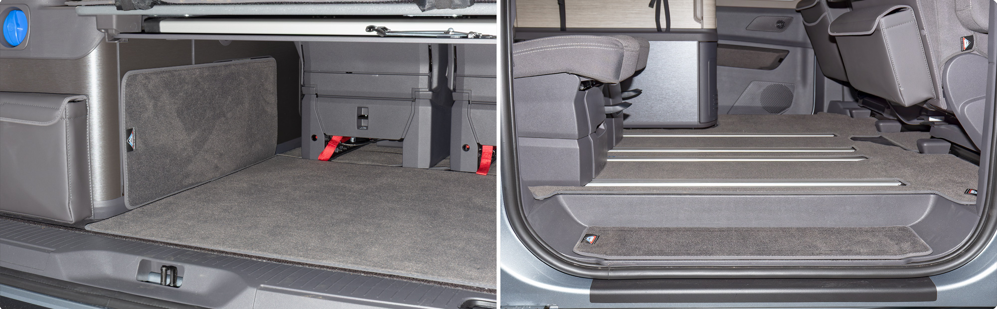 Il existe deux jeux de marchepieds différents pour l'habitacle des modèles VW T7.